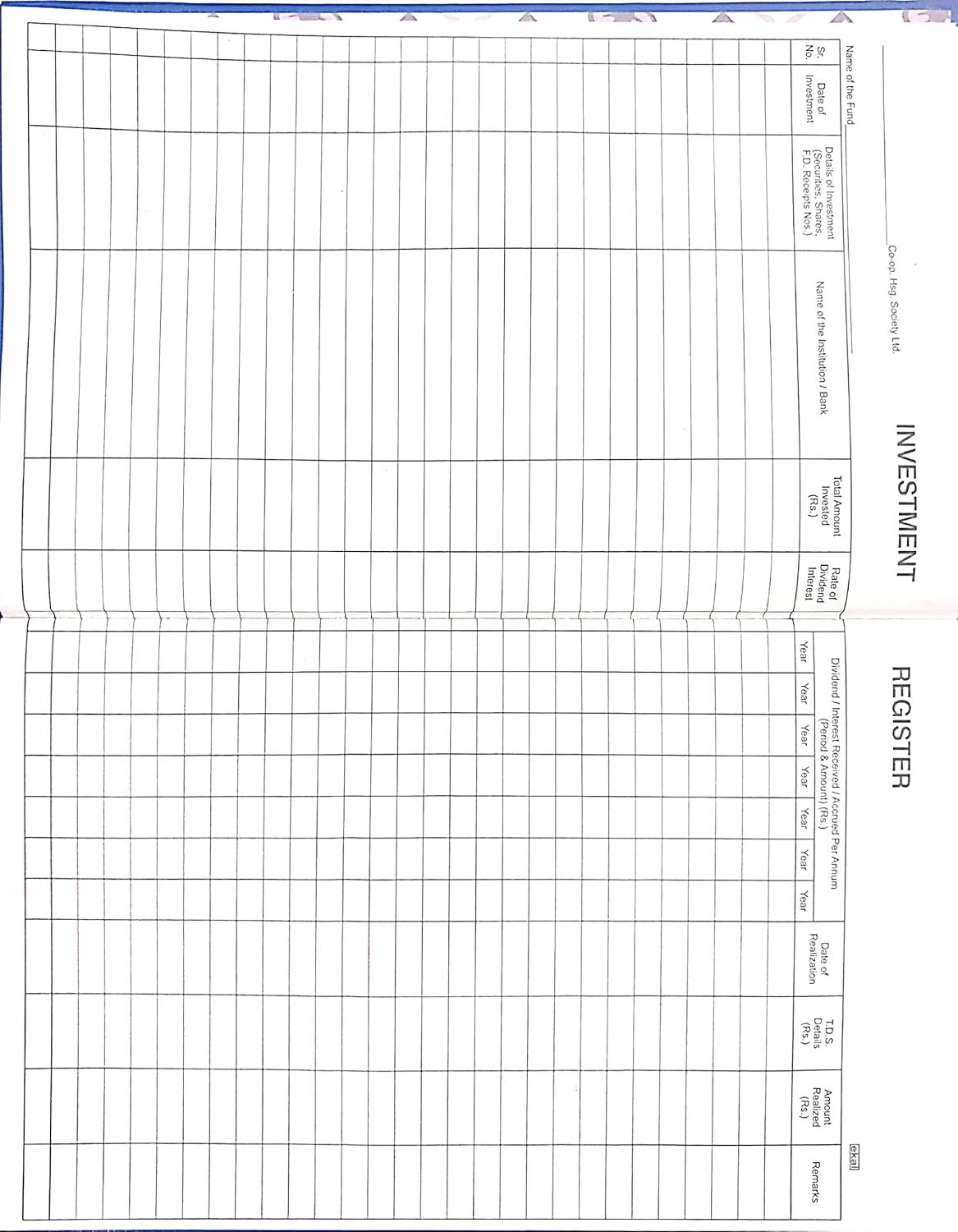 Investment Register from Ekal High-quality paper for organized records Ideal for official use in societies