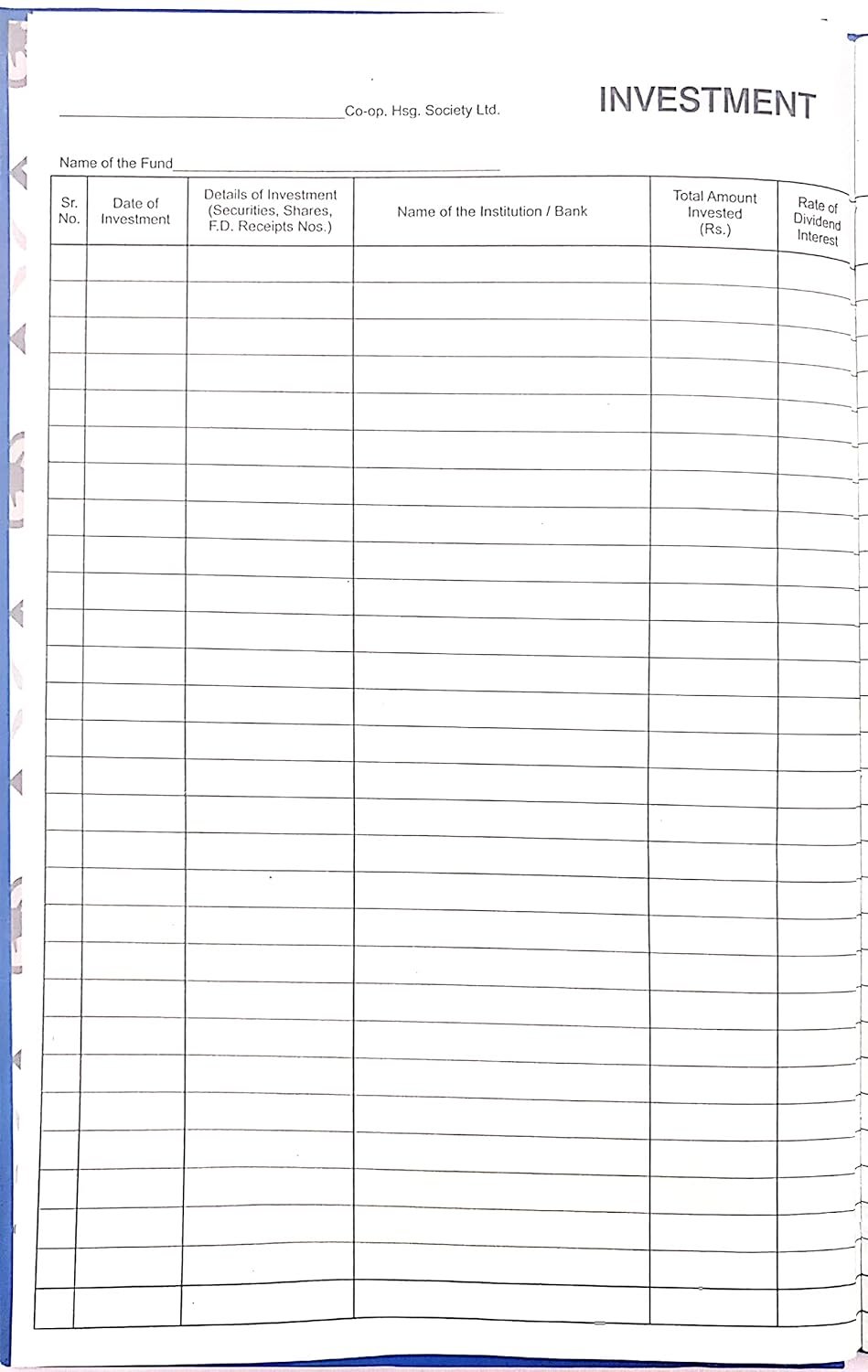 The Investment Register is a high-quality notebook designed for keeping official records of investments in a society. The durable cover and high-quality paper ensure long-term preservation of important details. HSN Code: 48201010.