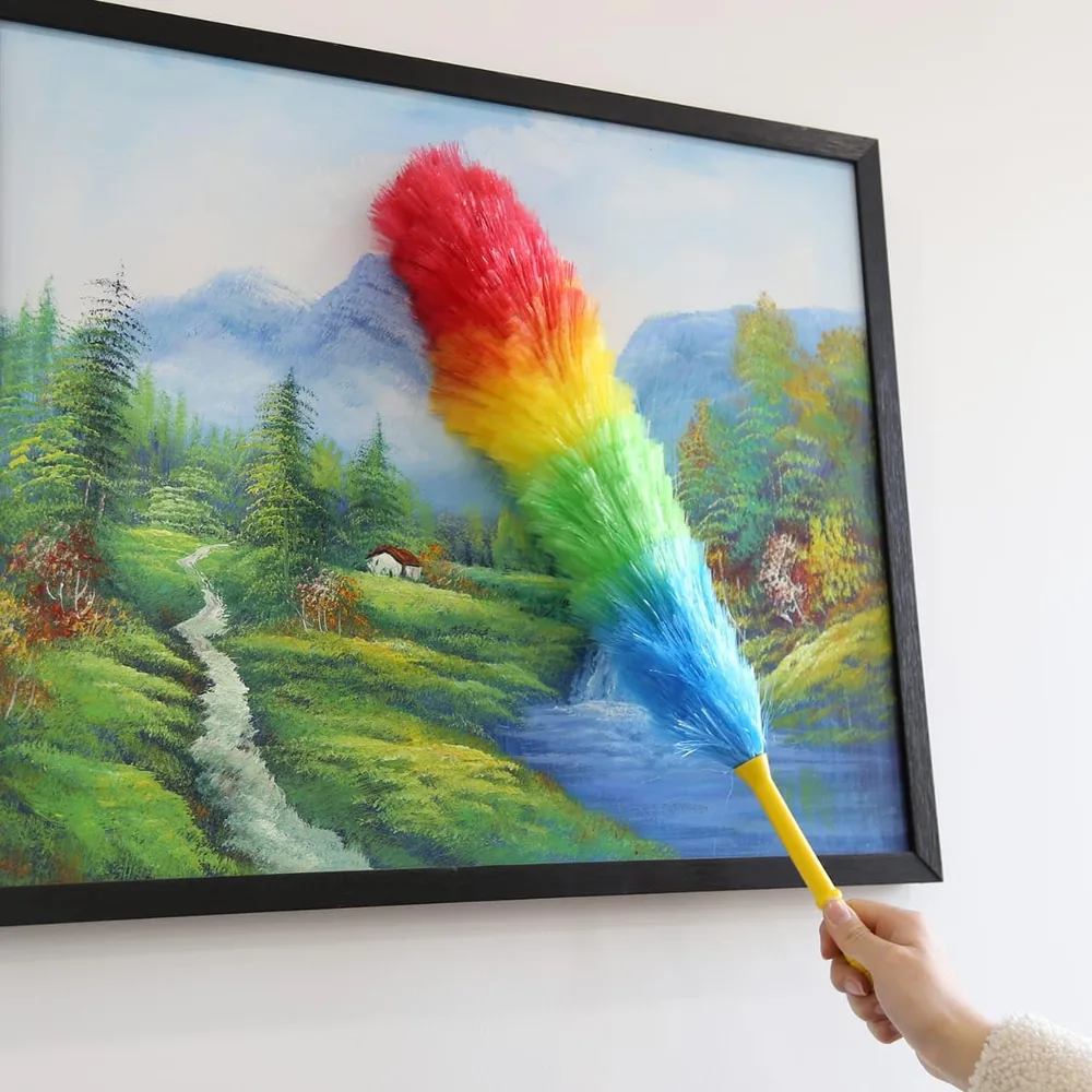 This vibrant and multi-purpose feather brush is perfect for dusting delicate surfaces, electronics, and intricate items. The soft, colorful feathers trap dust effectively, making it a fun and functional addition to your cleaning arsenal.