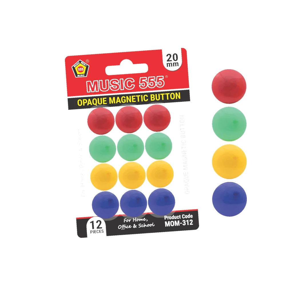 This pack of 12 magnetic buttons from Music 555 is perfect for holding papers, notes, and photos on whiteboards and other magnetic surfaces. The strong magnets ensure a firm grip without damaging documents. HSN Code: 85051900.