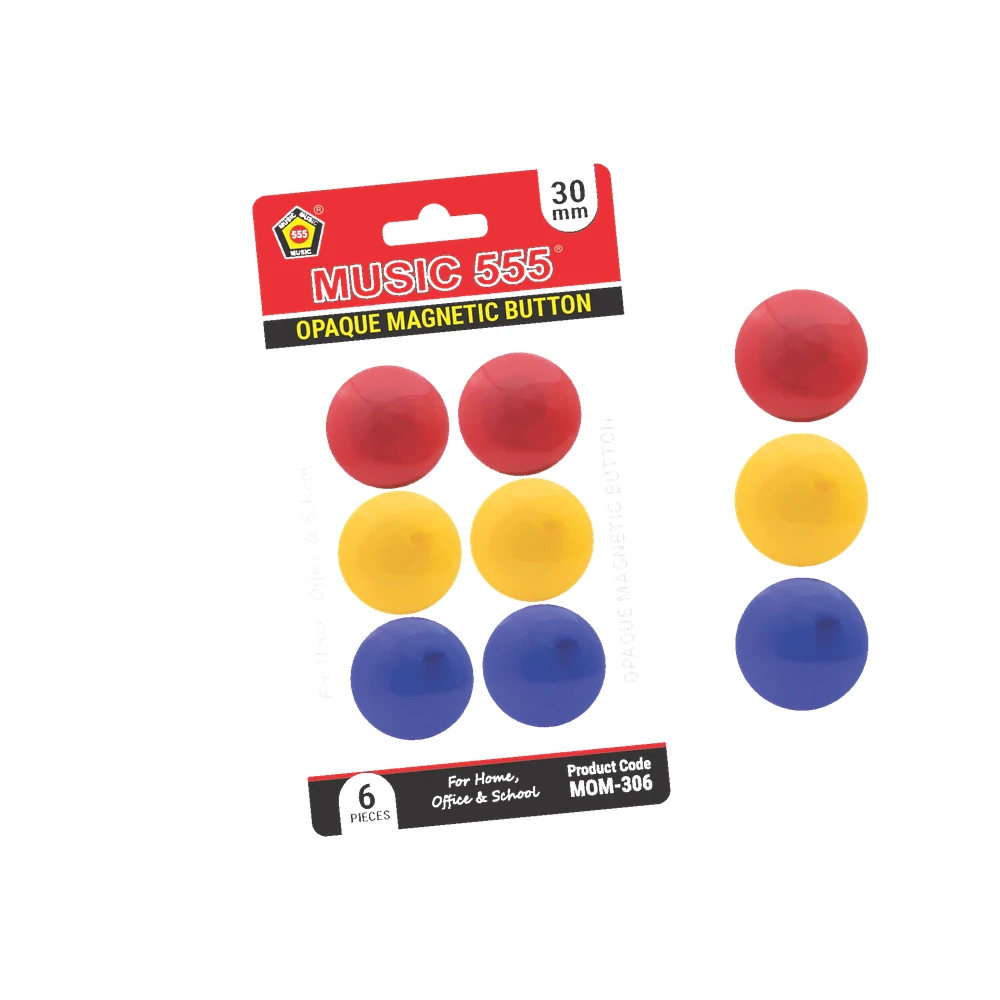 This pack of 6 magnetic buttons from Music 555 is perfect for holding papers, notes, and photos on whiteboards and other magnetic surfaces. The strong magnets ensure a firm grip without damaging documents. HSN Code: 85051900.