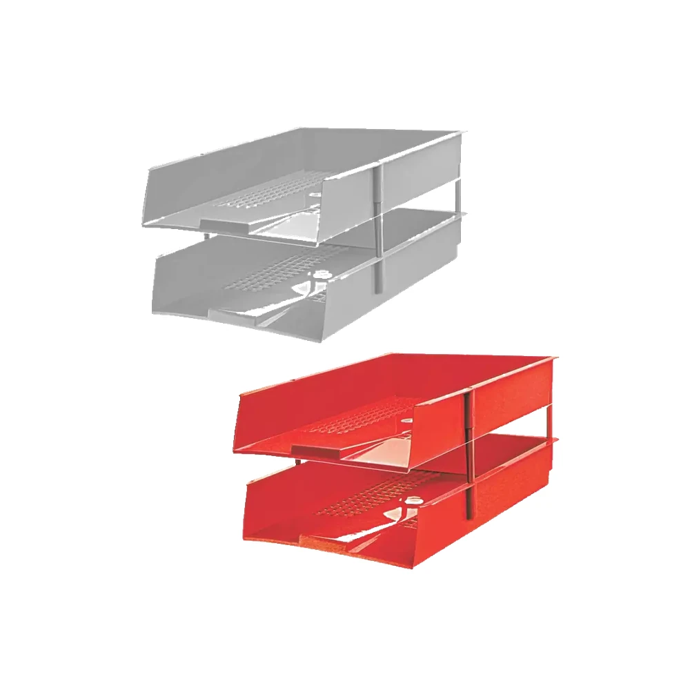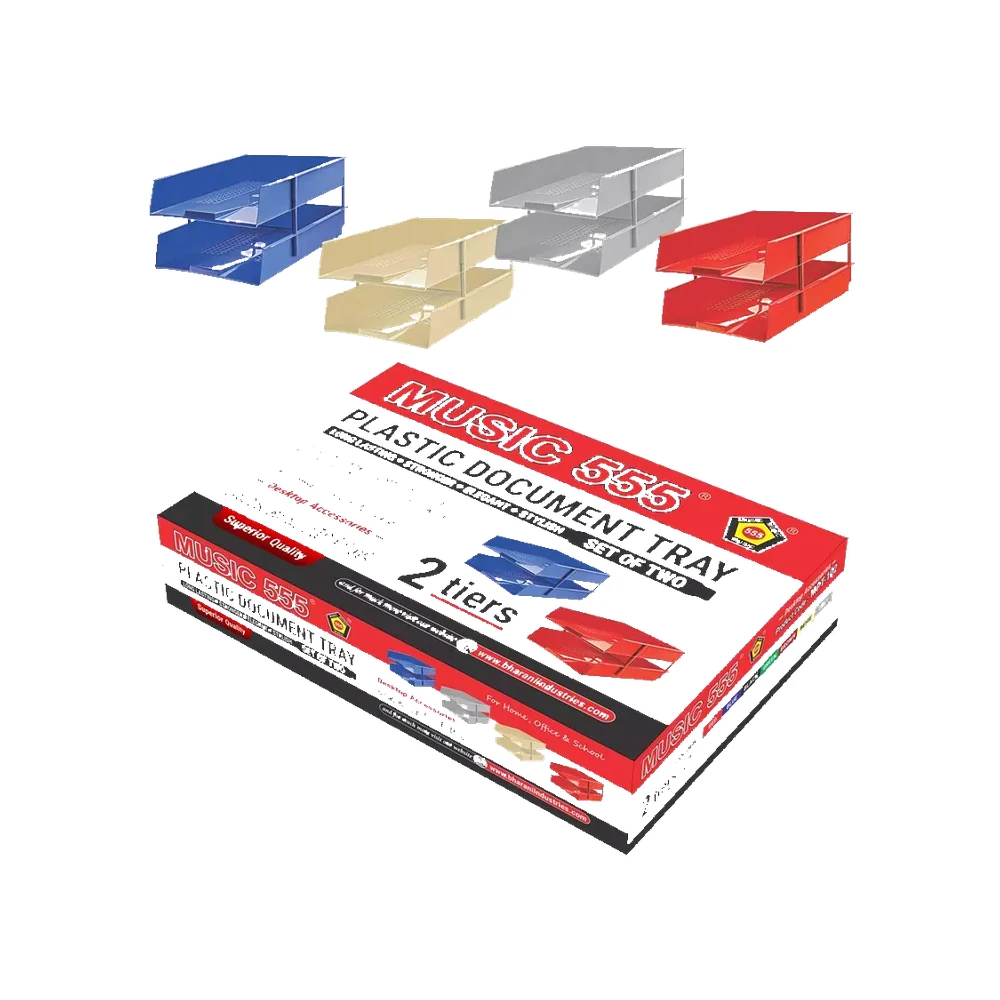 Plastic paper trays from Music 555 Available in 2 and 4-tier options for organized document storage Durable and stylish for any office desk